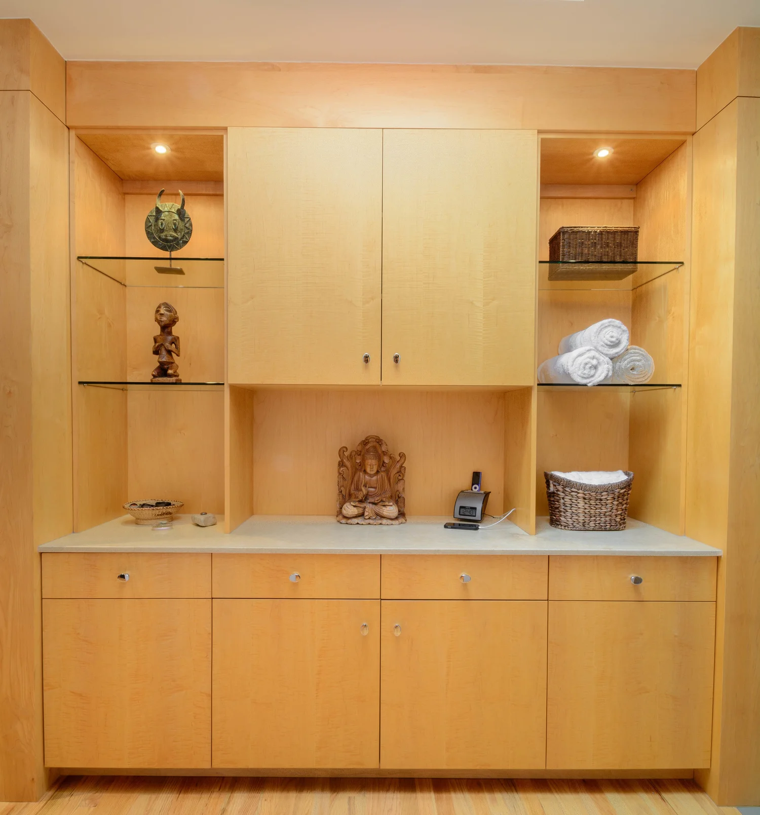 Recessed lighting goes up into the ceiling with the light sitting flush along the ceiling.